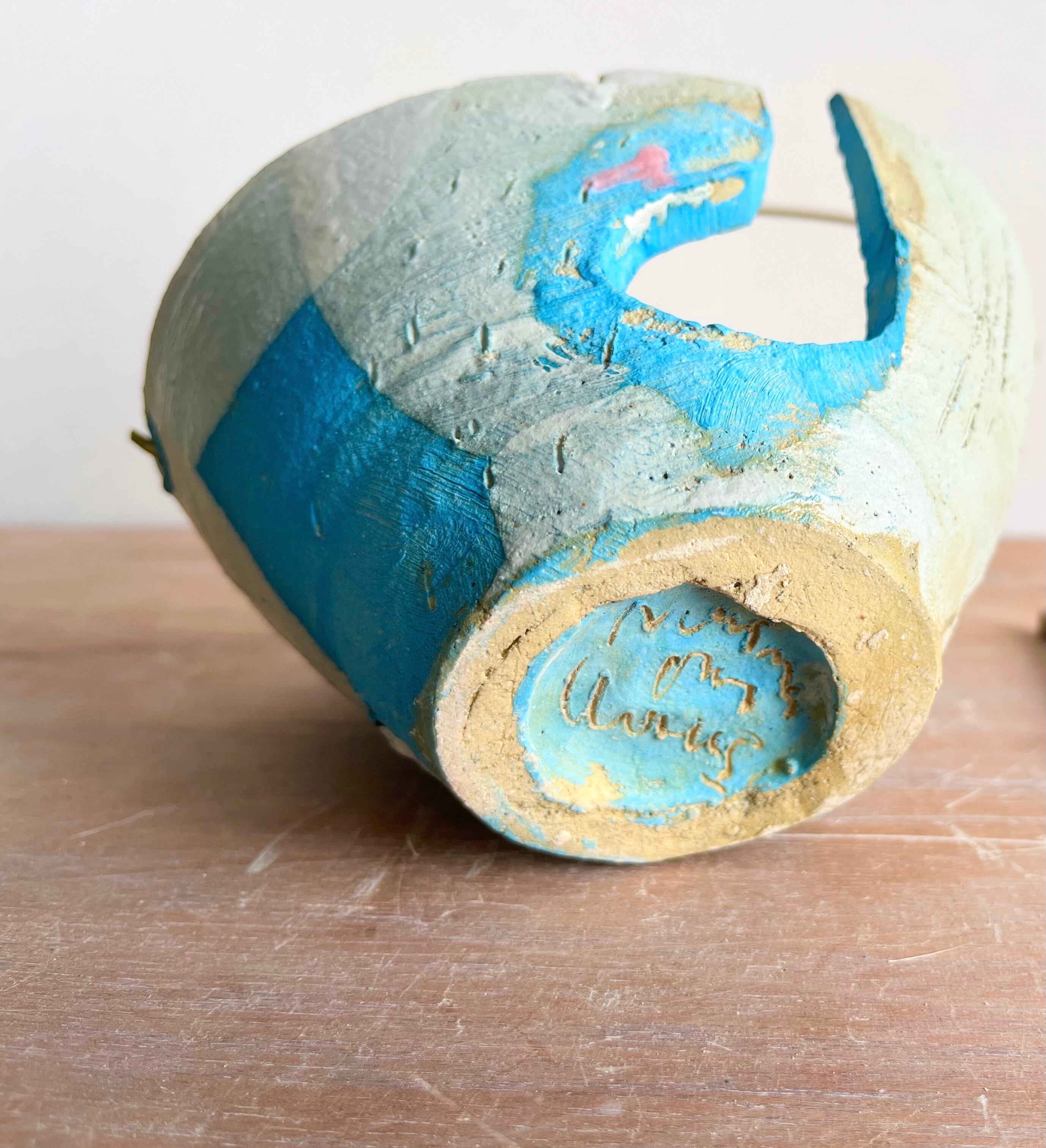 白の掛け分けの隙間から覗く水色に、ピンクのドリッピング。