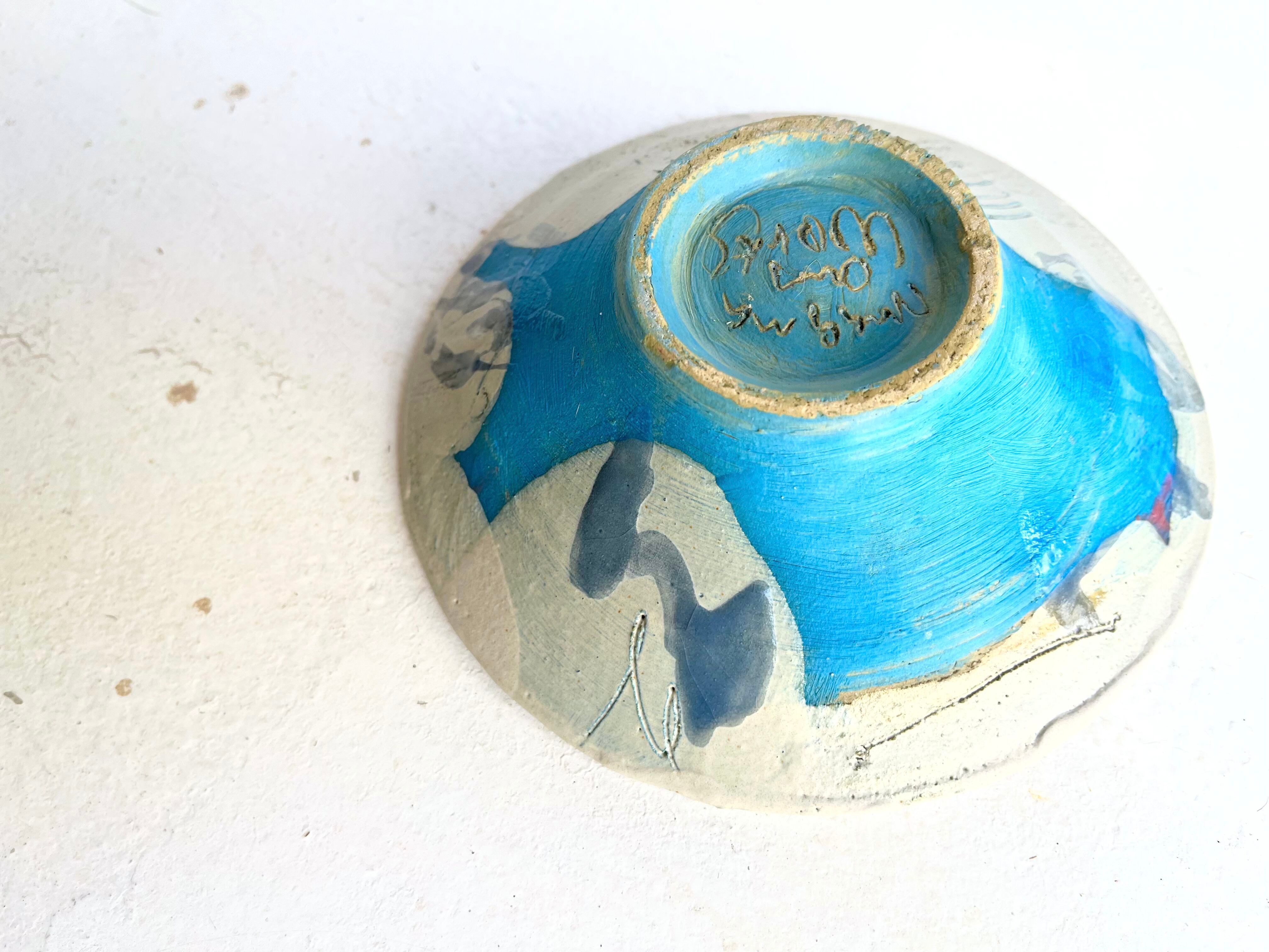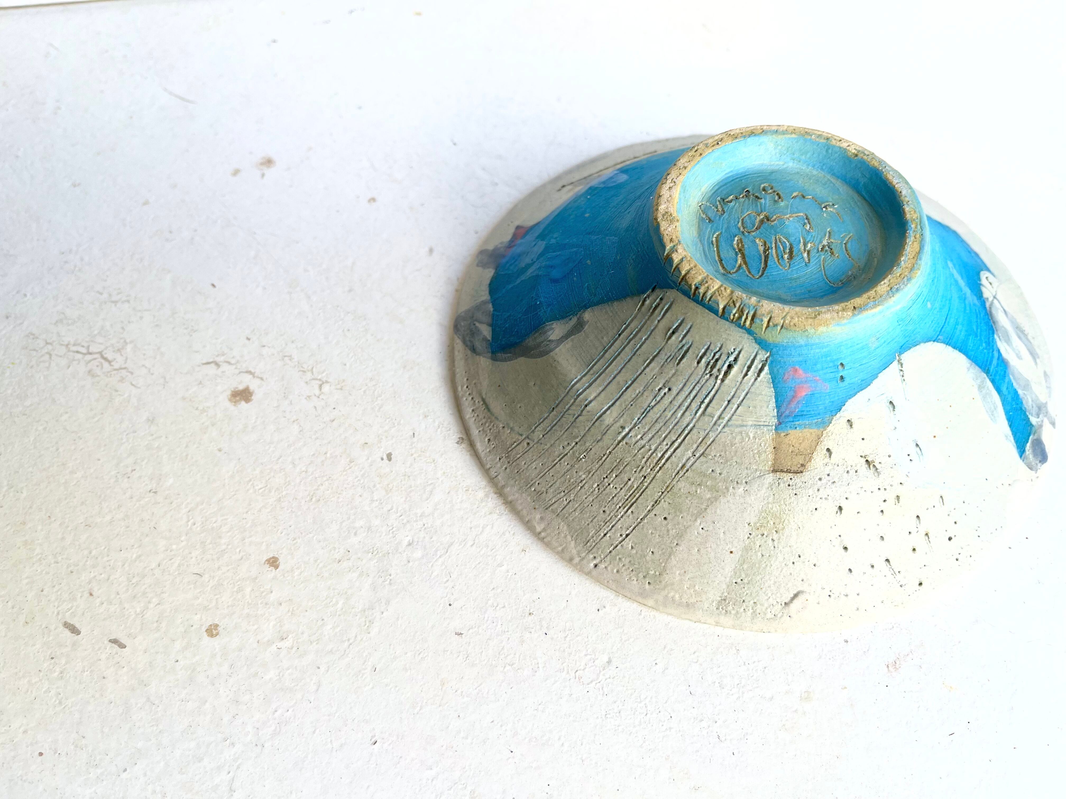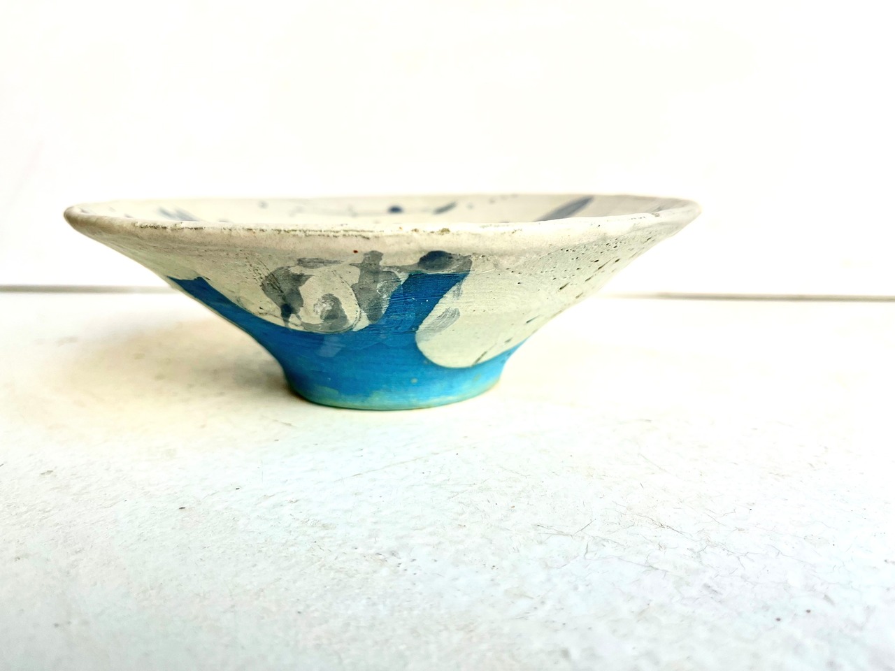 白の掛け分けの隙間から覗く水色に、ピンクのドリッピング。