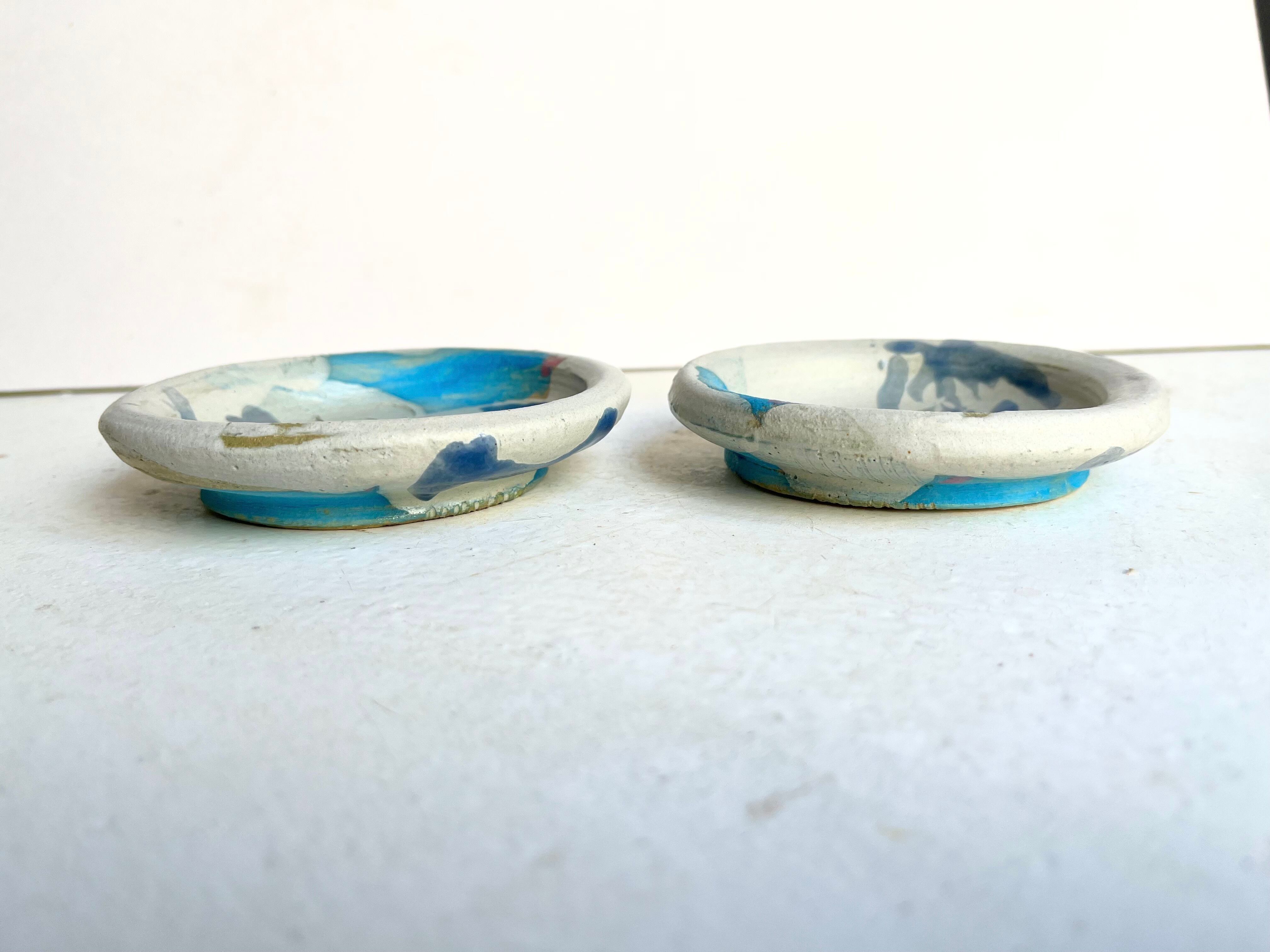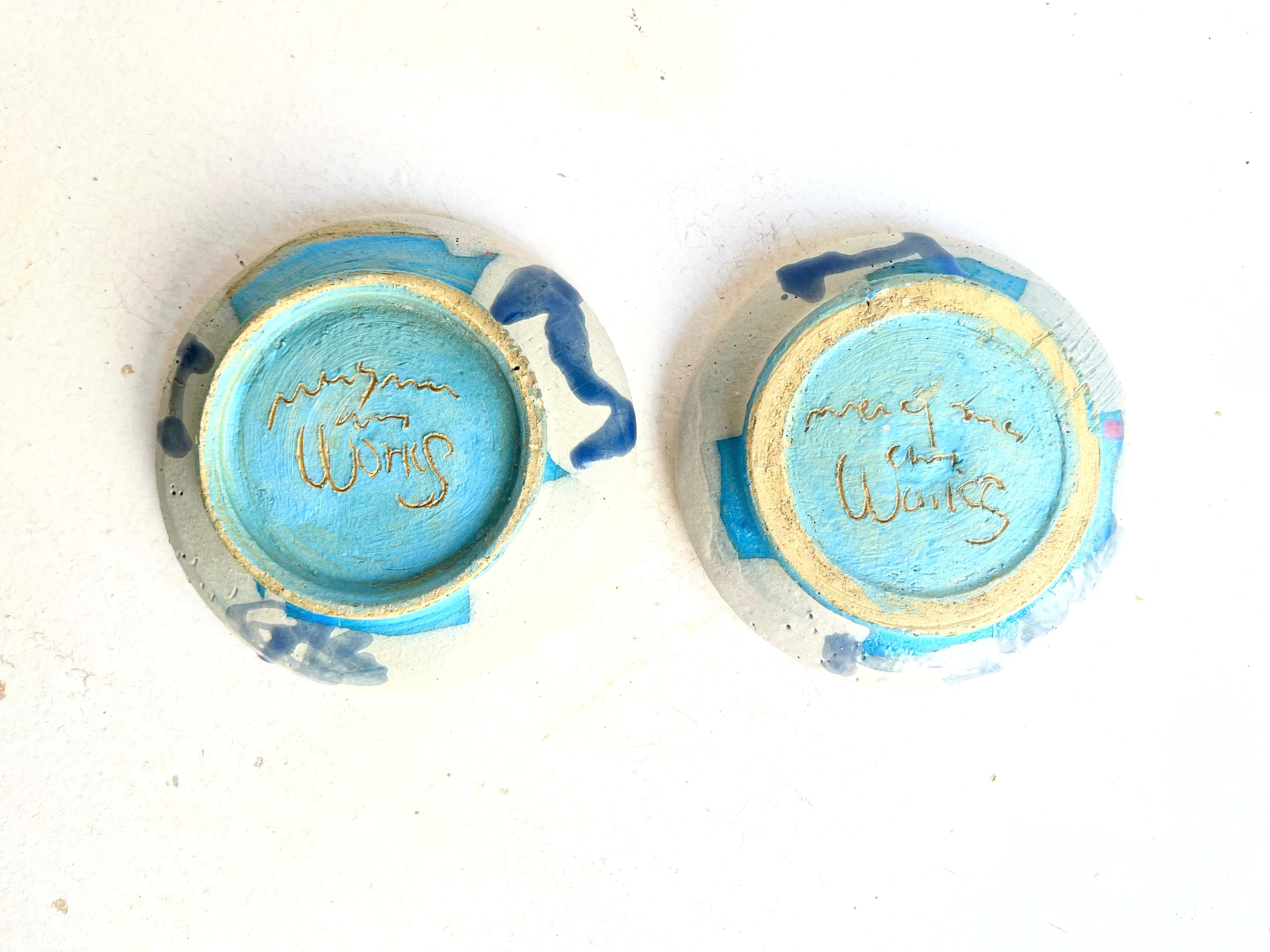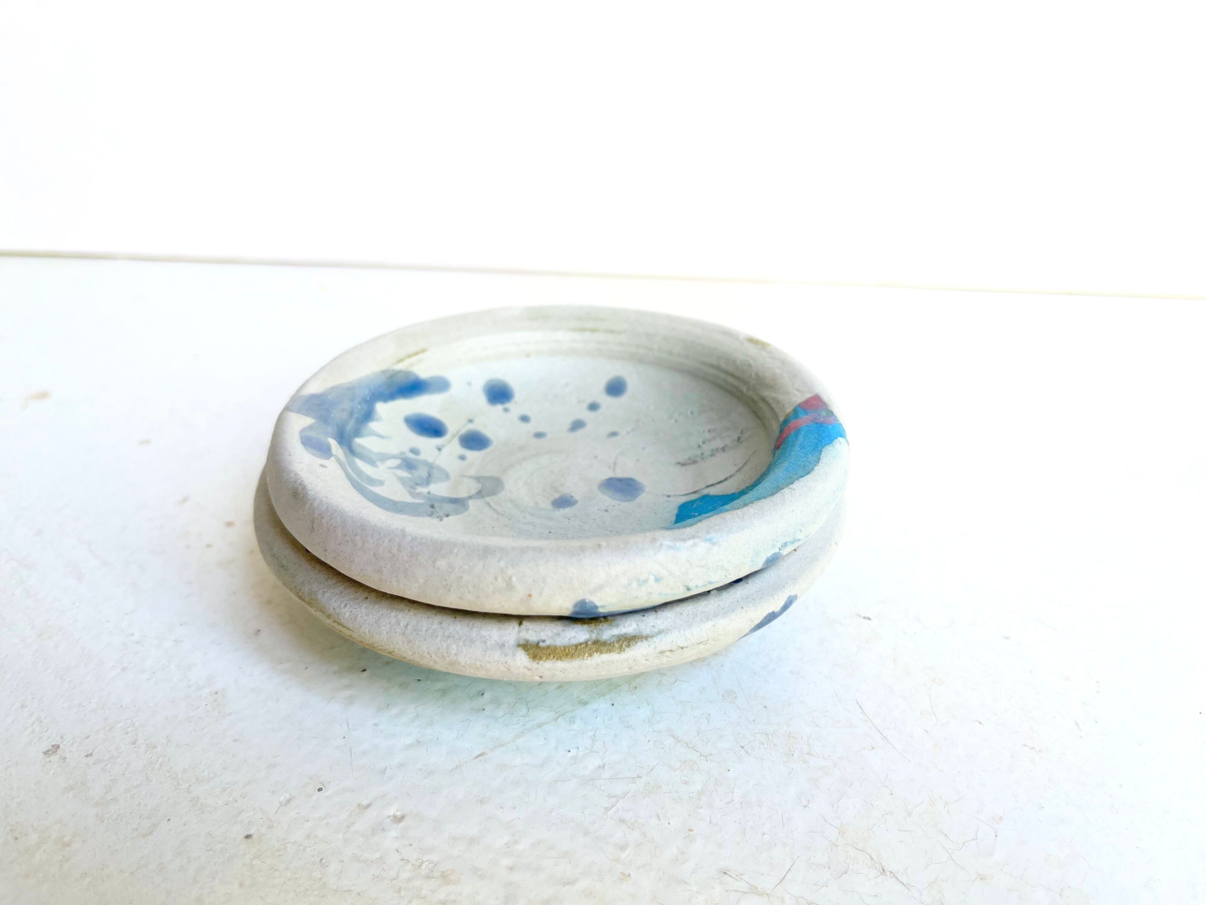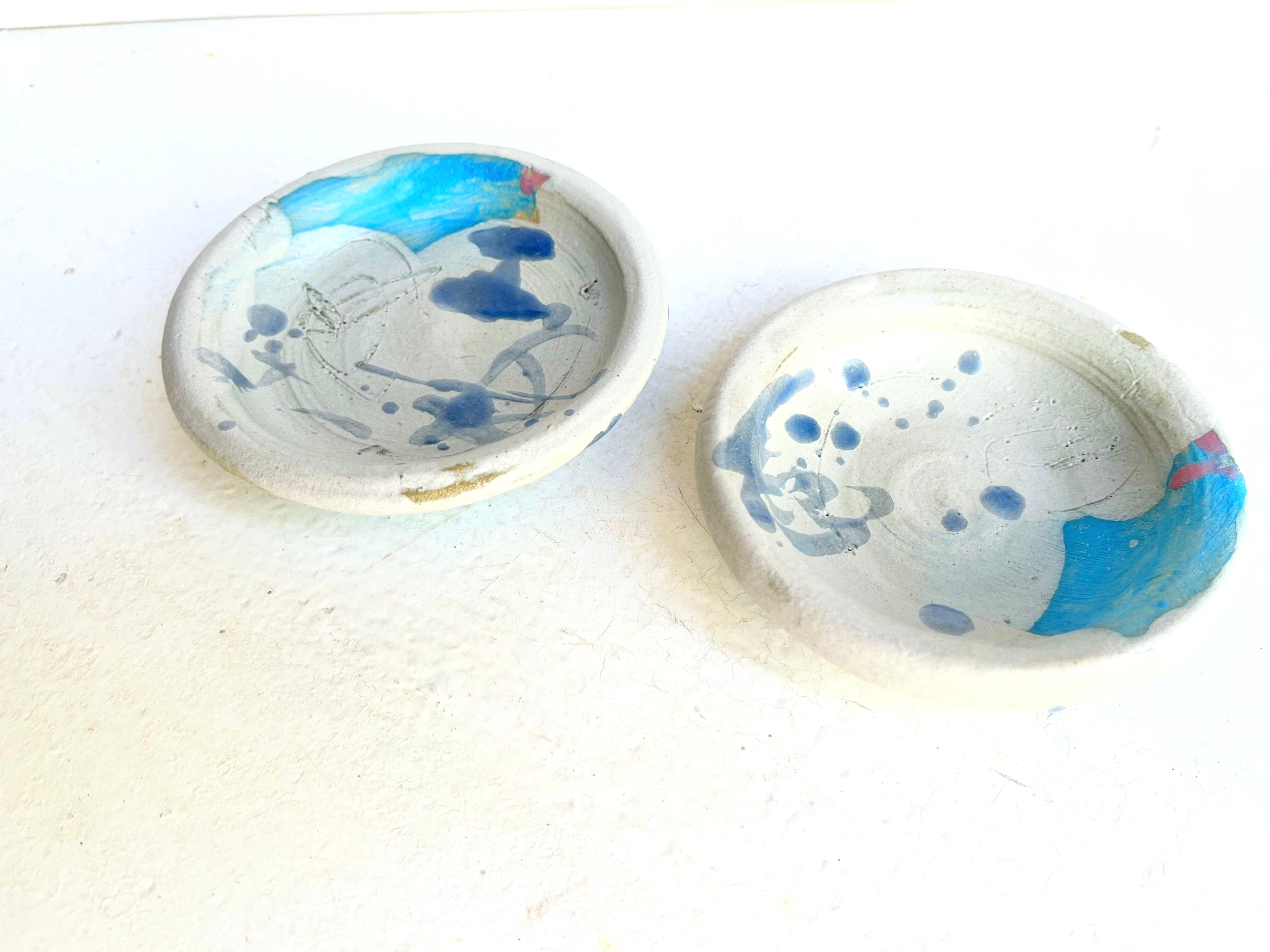 白の掛け分けの隙間から覗く水色に、ピンクのドリッピング。