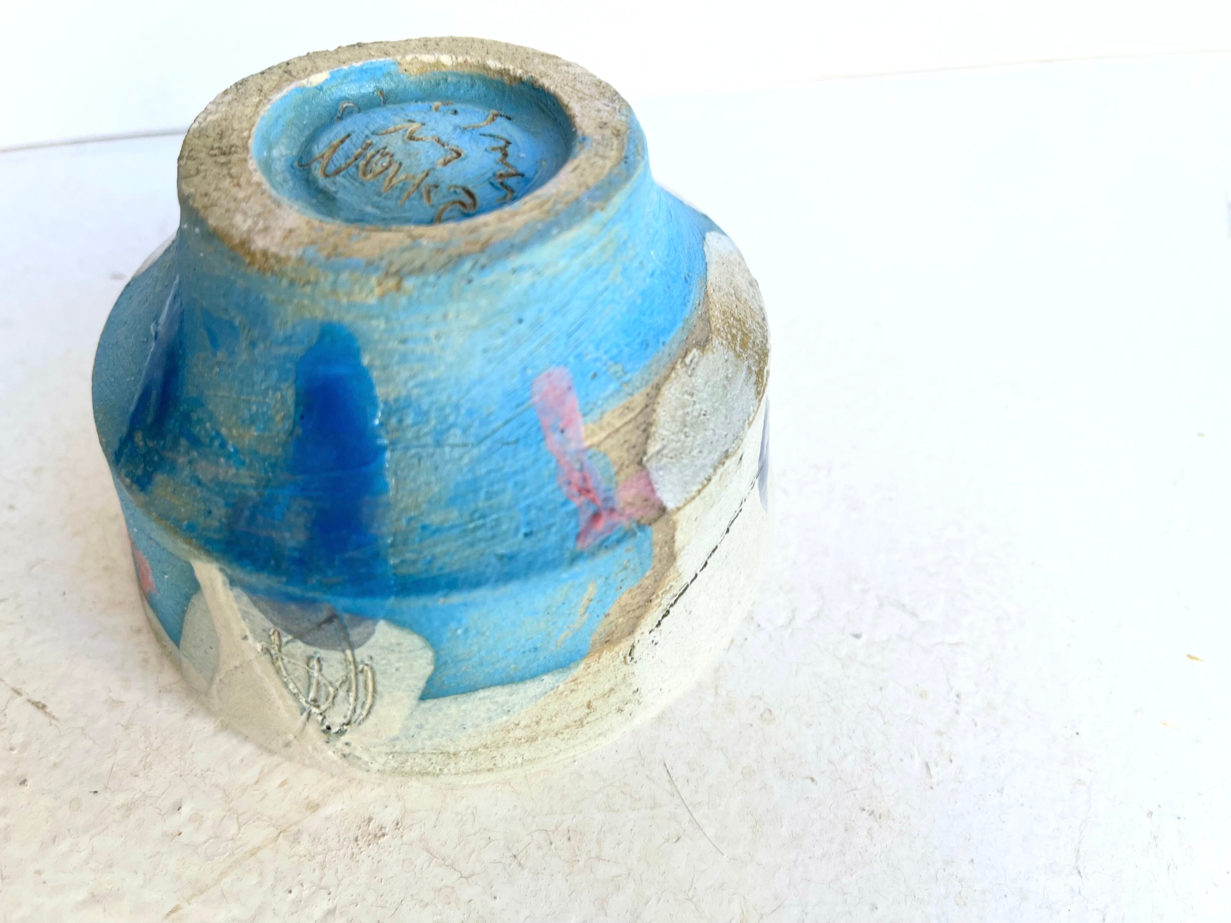 白マットの少し窯変した錆感で落ち着きもありながらポップな湯呑みになっています。