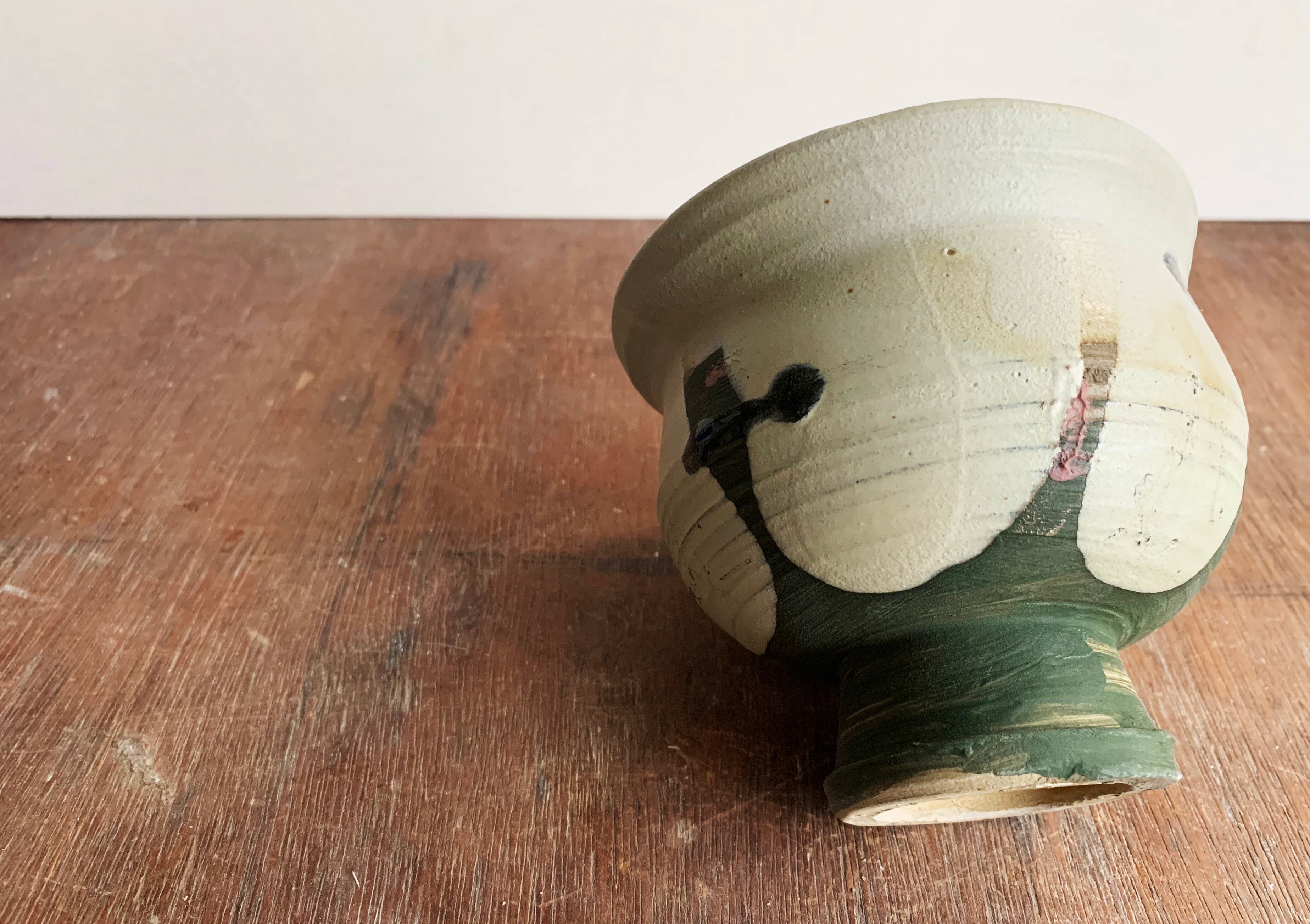 白の掛け分けの隙間から覗く緑が高台まで塗られて、