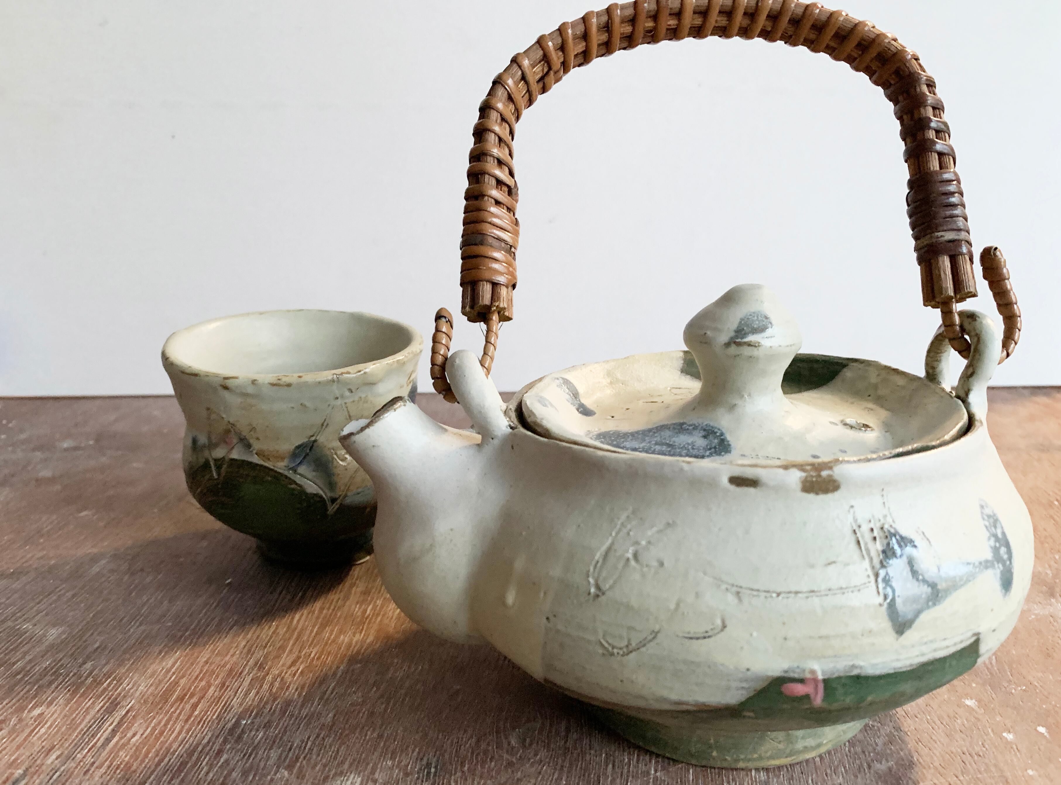 白マットの少し窯変した錆感で落ち着きもありながらポップな急須になっています。